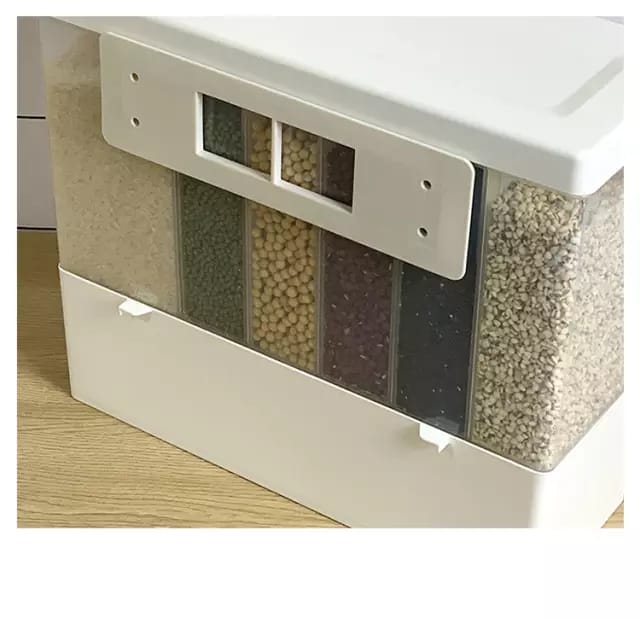 6 Grid Storage: Perfect for storing flour, sugar, rice, grain, nuts, beans, snacks, pasta, coffee Easily to Use:Just place the bowl under the dispenser and press the button to get the controlled part Large Capacity:The transparent body can see the food in the box, and the large capacity can hold all kinds of dry food High Quality:Made of food grade plastic, The durable plastic containers can be used for a long time, good for you and safe for your family.These clear Containers are also easy to clean, extremely USER FRIENDLY and ready to use